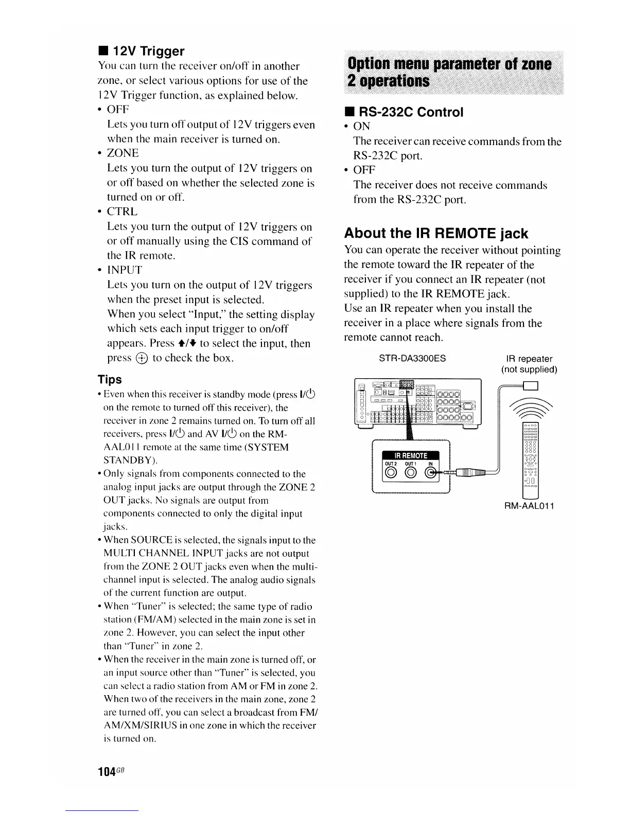 receiver in zone 2 remains turned on. To