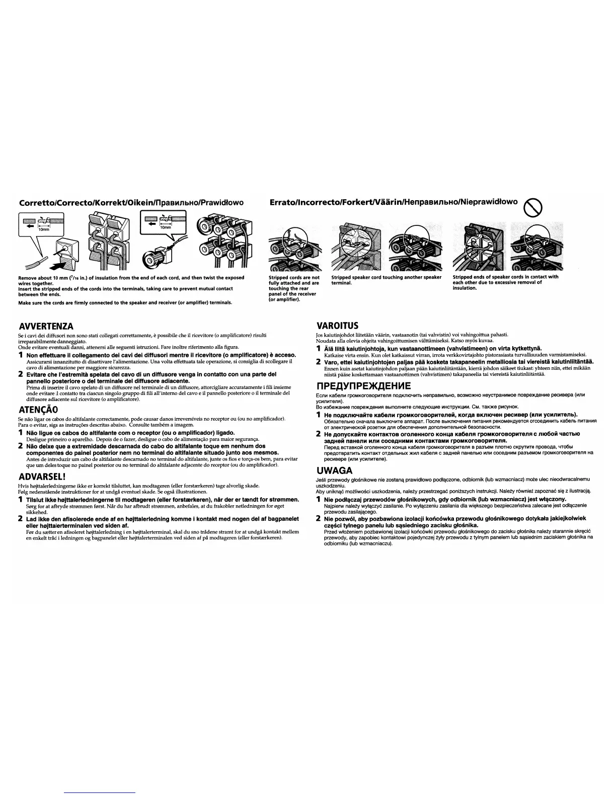2 Nie pozw61, aby pozbawiona izolacji konc6wka przewodu glosnikowego dotykala jakiejkolwiek