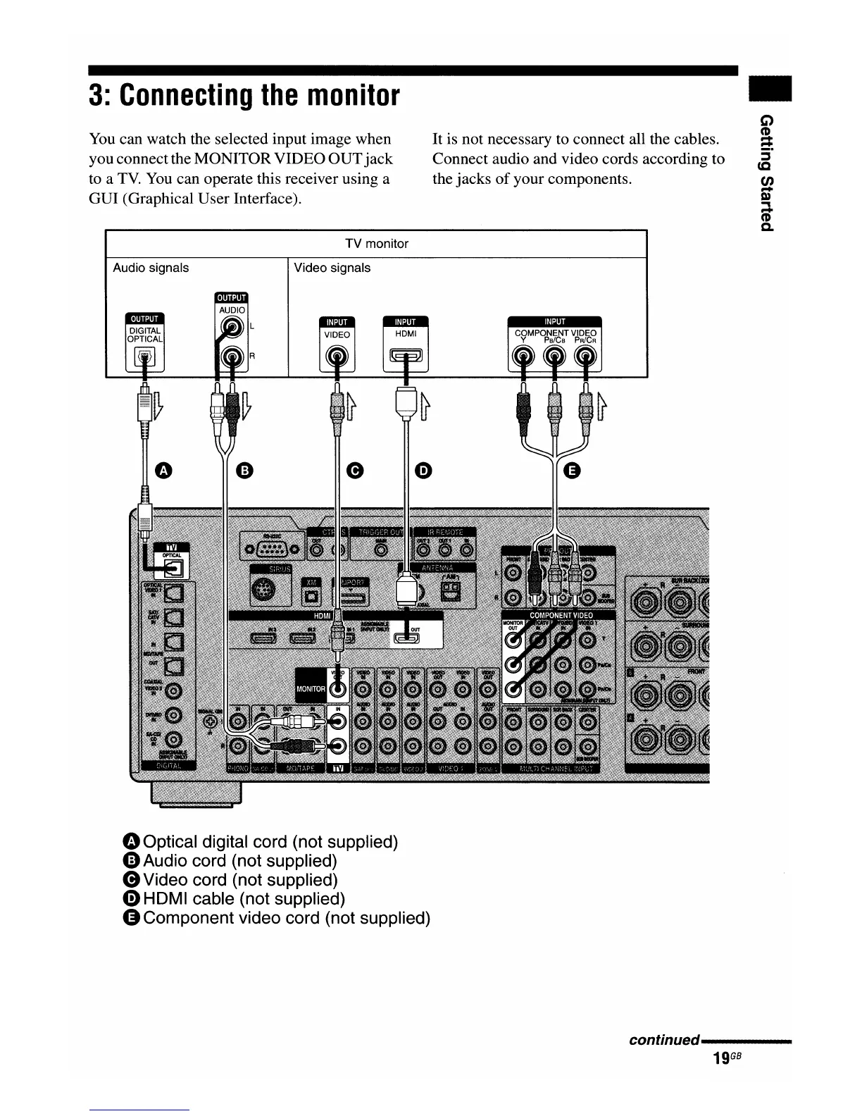 e Video cord (not supplied)