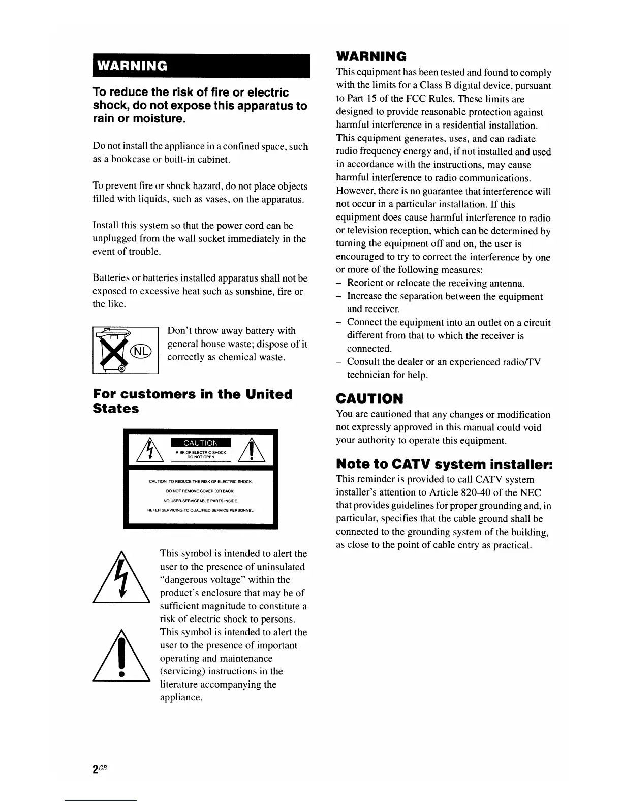 CAUTION: TO REDUCE THE RISK OF ELECTRIC SHOCK,