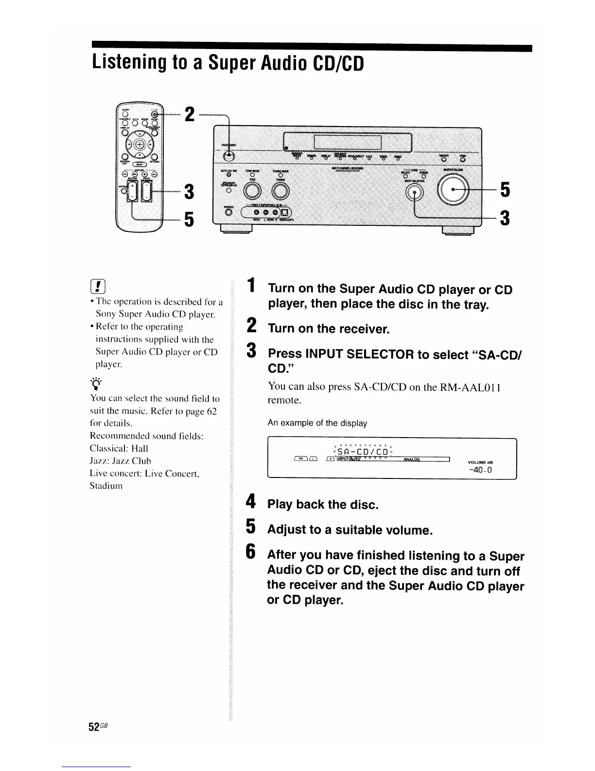 the receiver and the Super Audio CD player