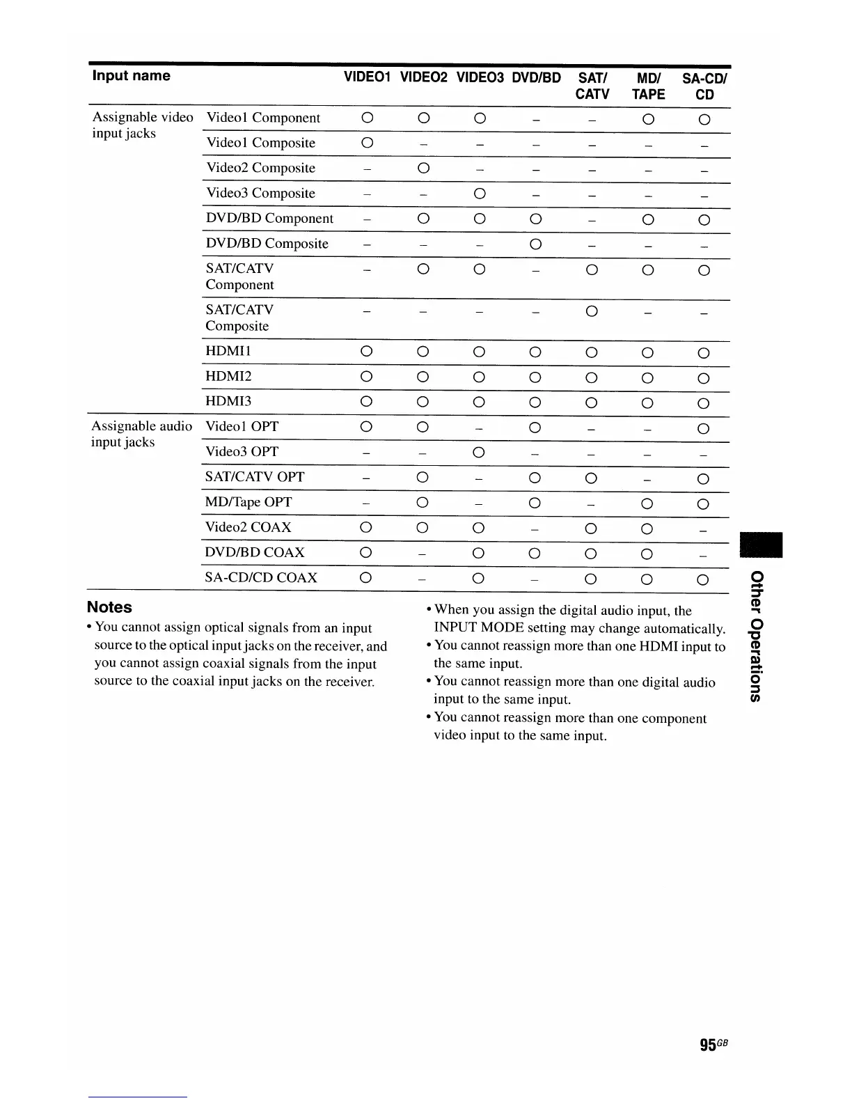 • You cannot assign optical signals from an input