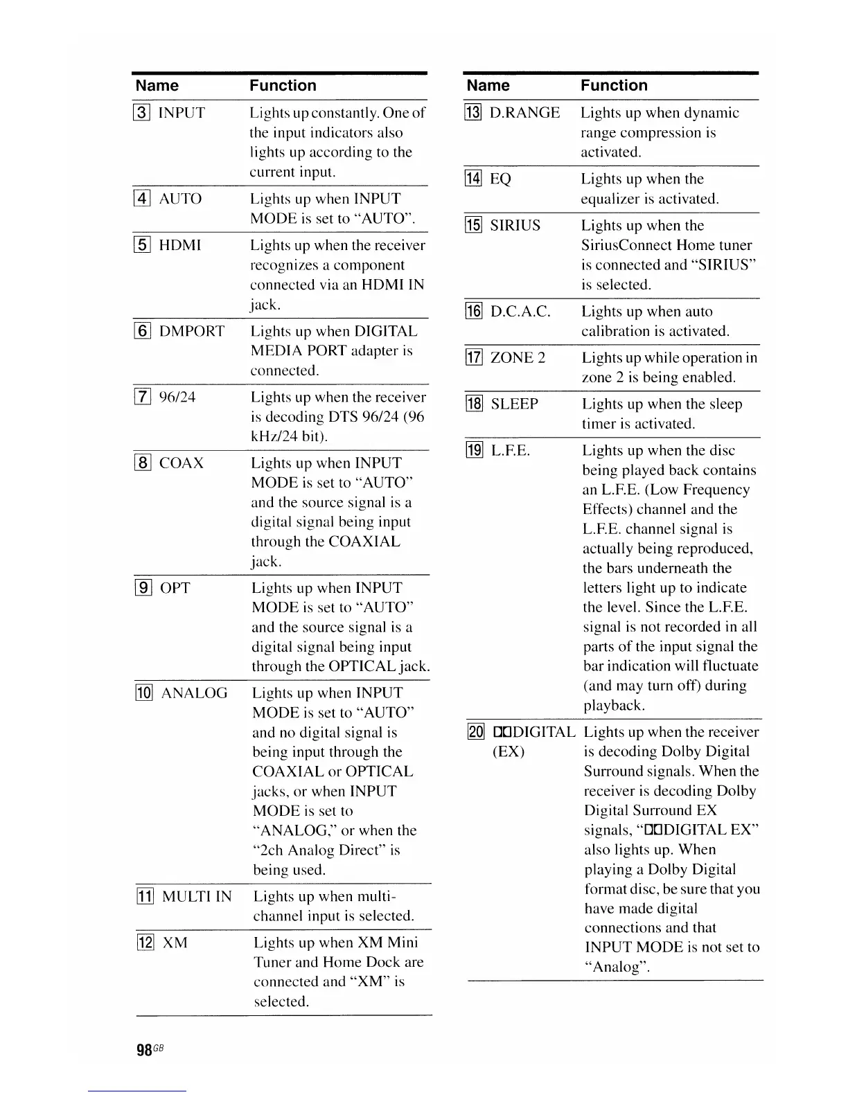 96/24 Lights up when the receiver