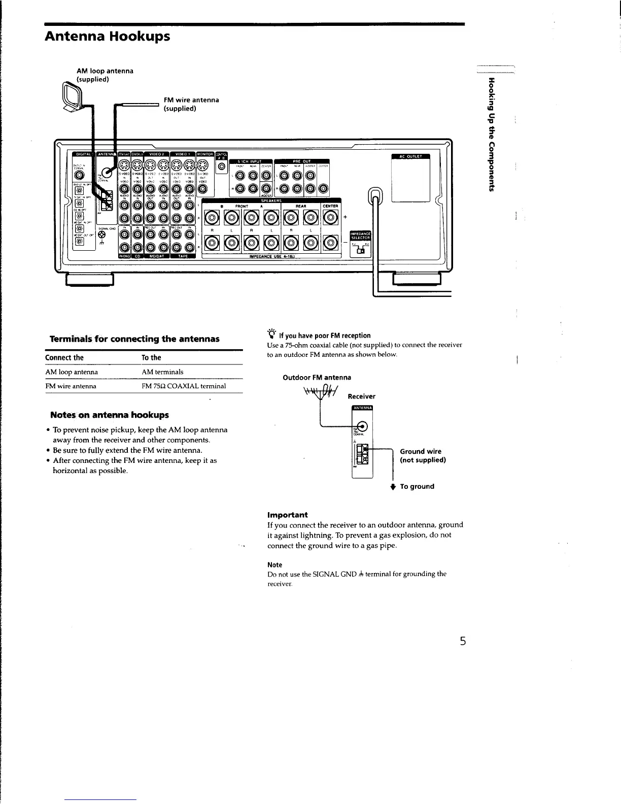 Sony STR-DA333ES Primary - Antenna Hookups; Terminals for Connecting the Antennas; Notes on Antenna Hookups; If You Have Poor FM Reception