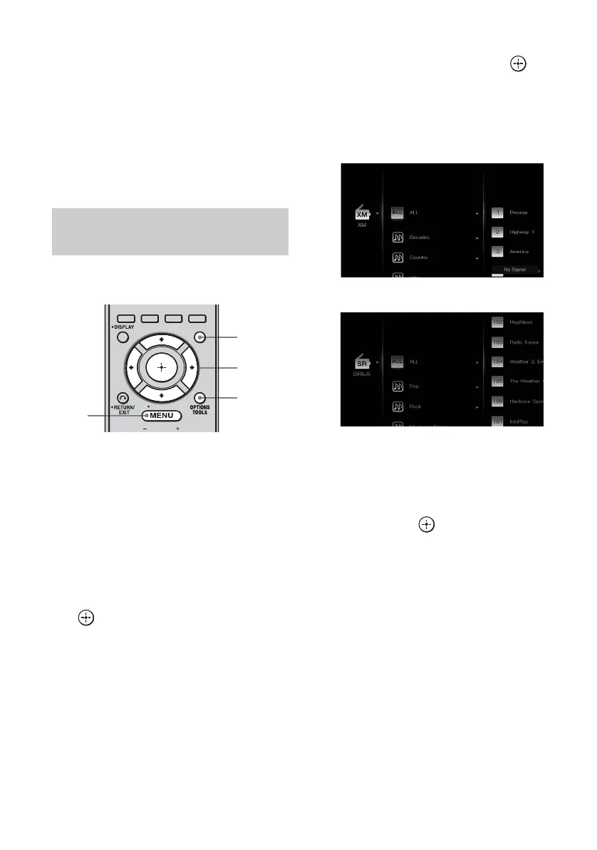 “XM” or “SIRIUS”, then press