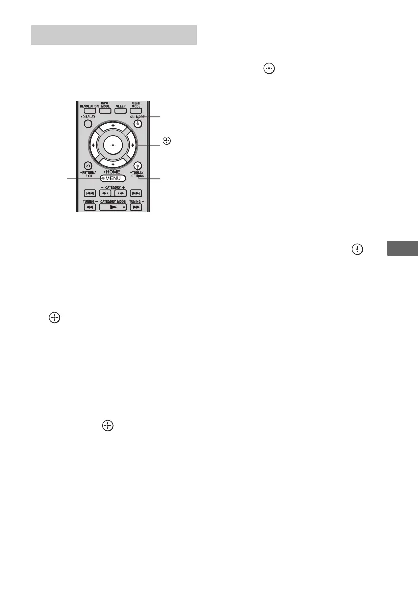 The GUI menu appears on the TV screen.