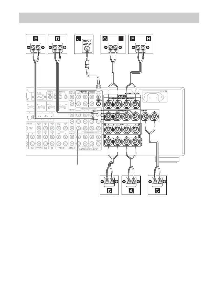 BACK/FRONT HIGH/ZONE 2 L terminals.