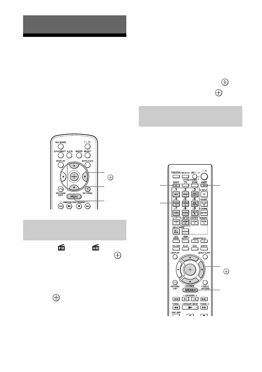The FM or AM menu list appears on the