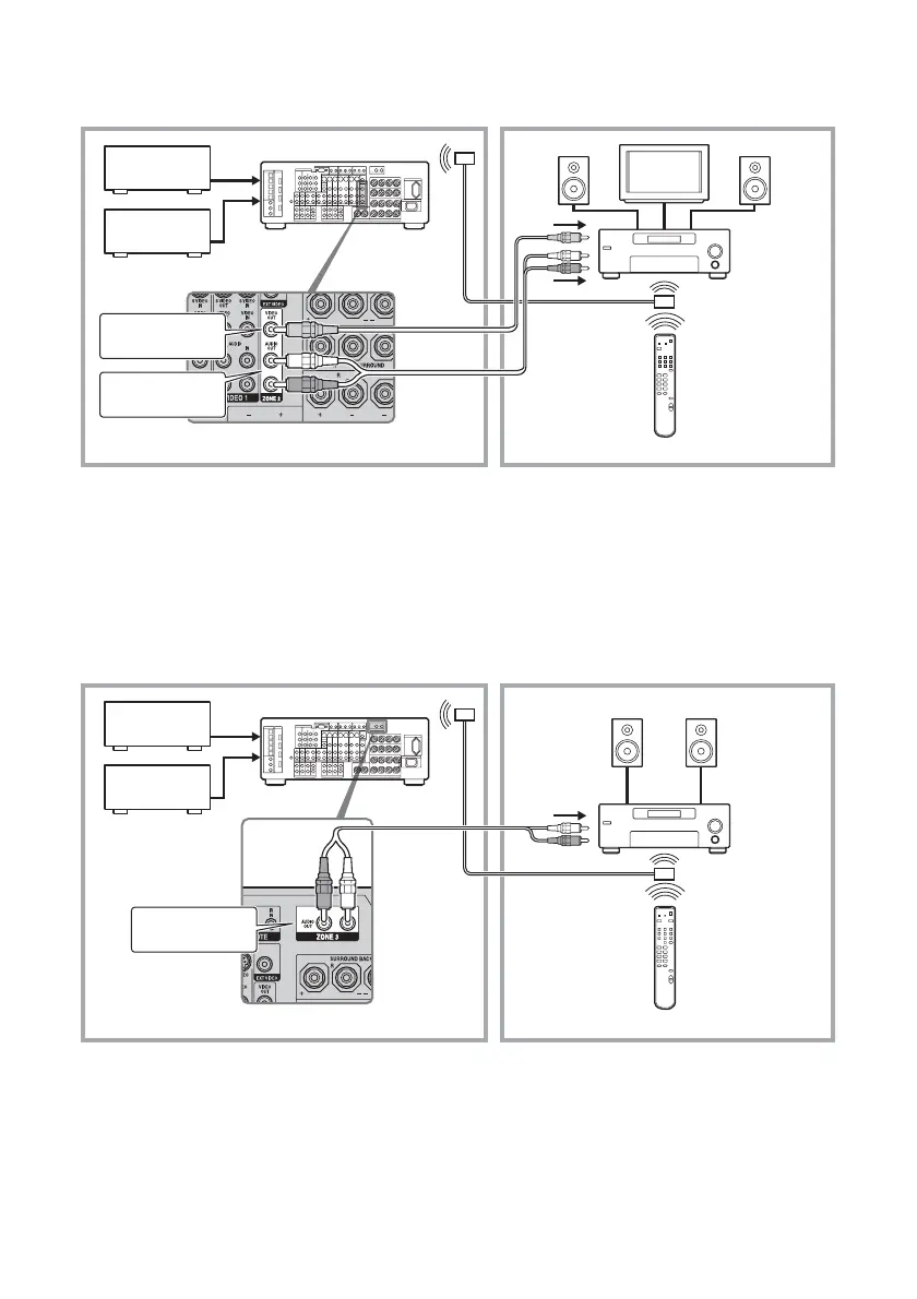 2 Outputs sound from speakers in zone 2 using the receiver and another