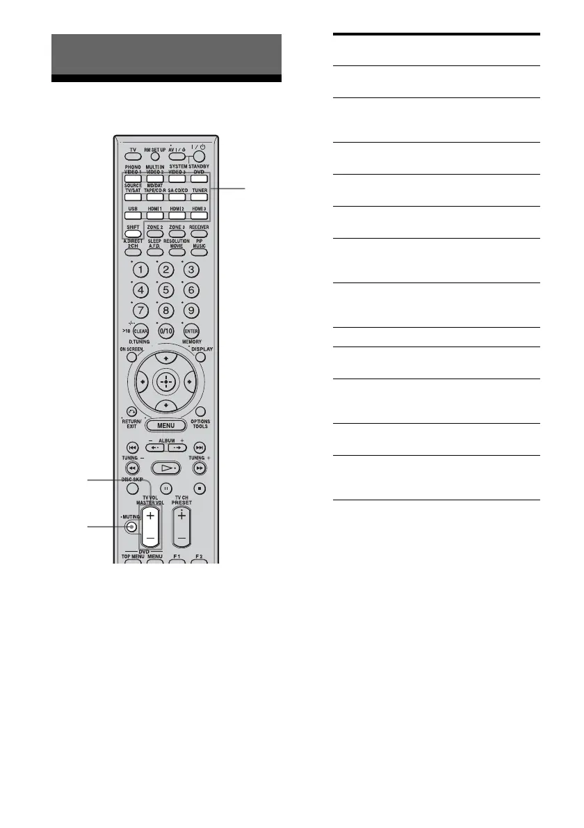 3 Press MASTER VOL +/– to