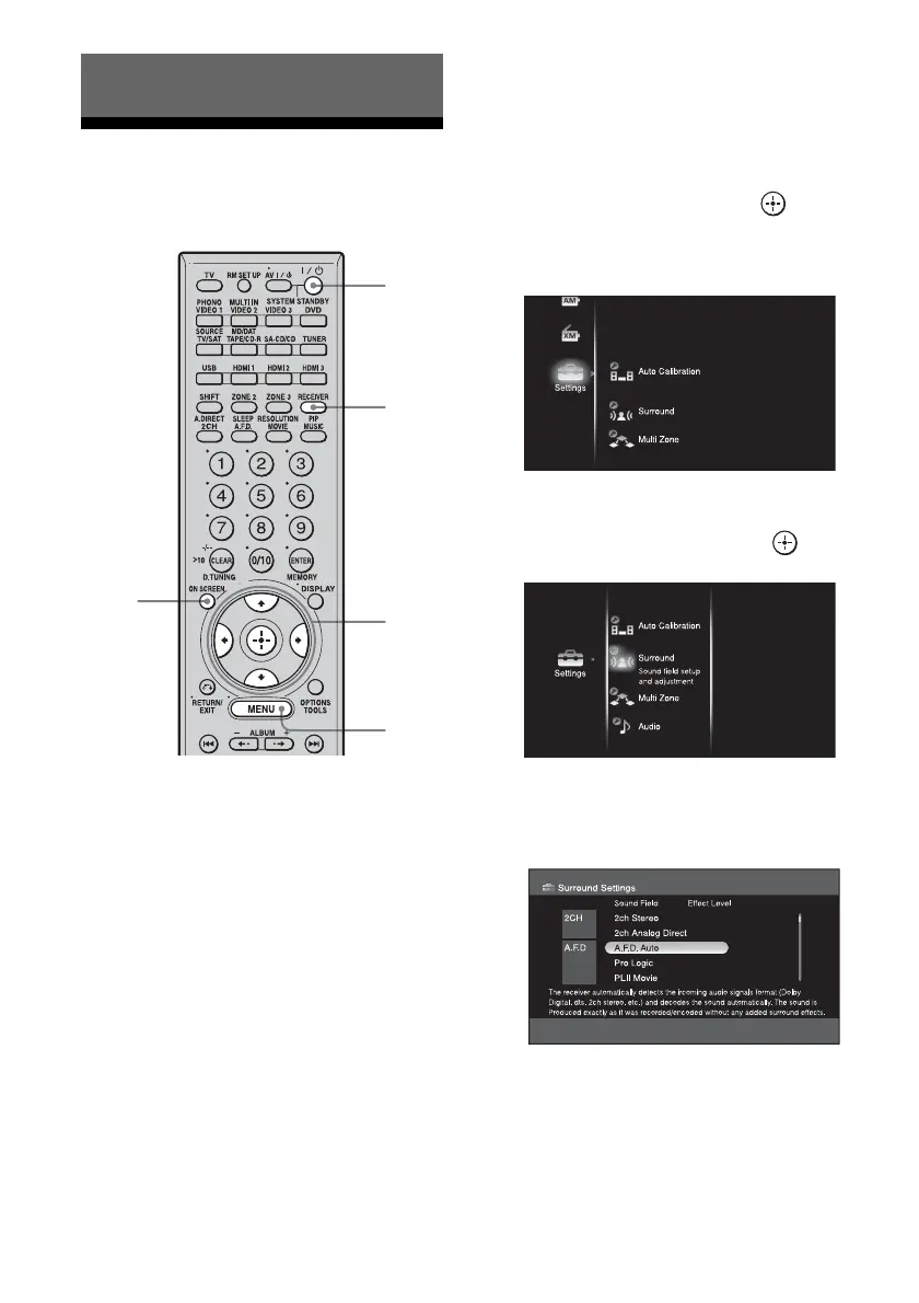 3 Turn on the receiver and the TV.