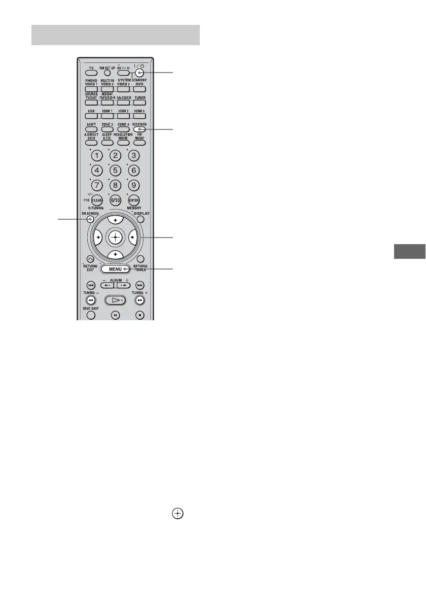 2 Turn on the receiver and the TV.