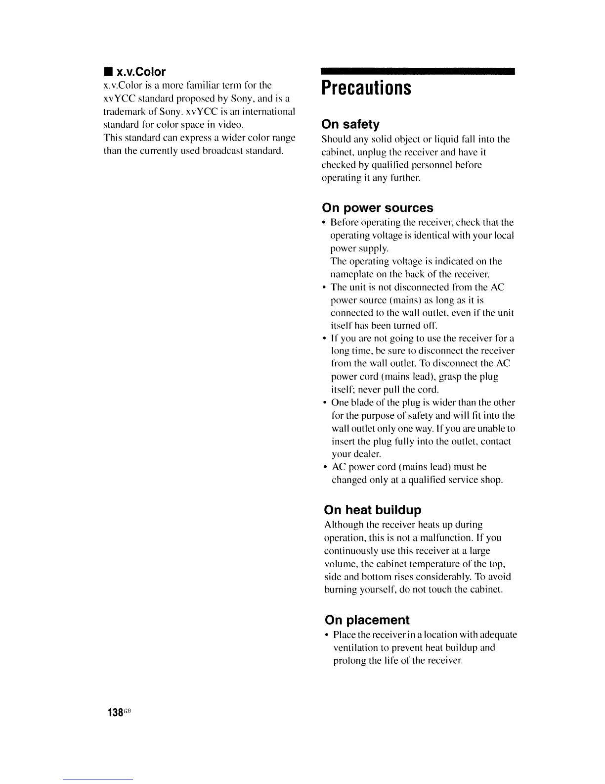 • If you are not going to use the receiver for a