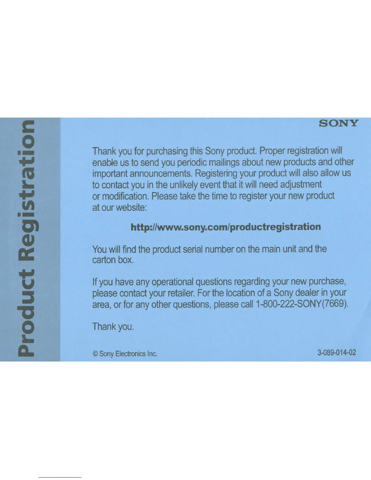 http://www.sony.com/productregistration