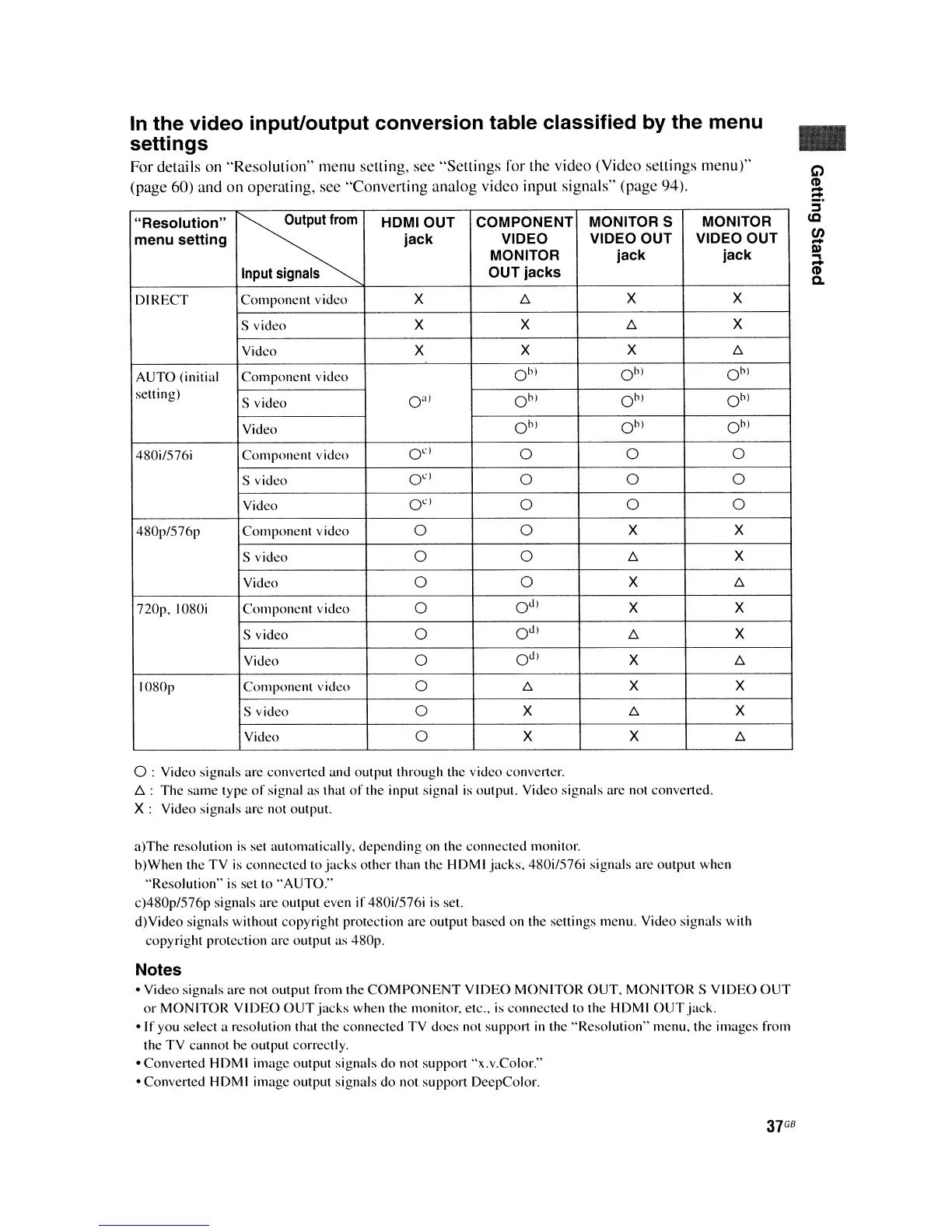 o Converted HDMI image output signals do not support "x.v.Color."