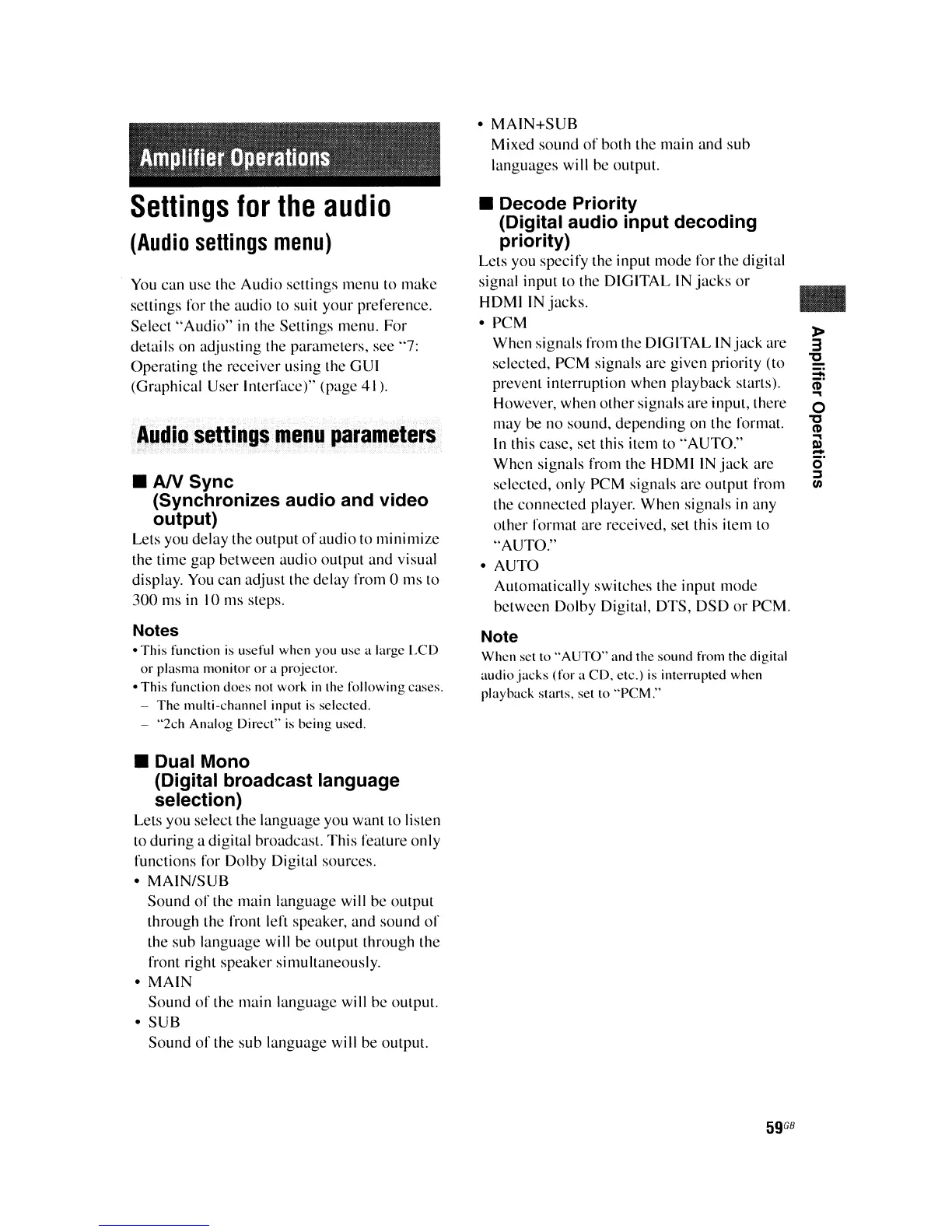 functions for Dolby Digital sources.