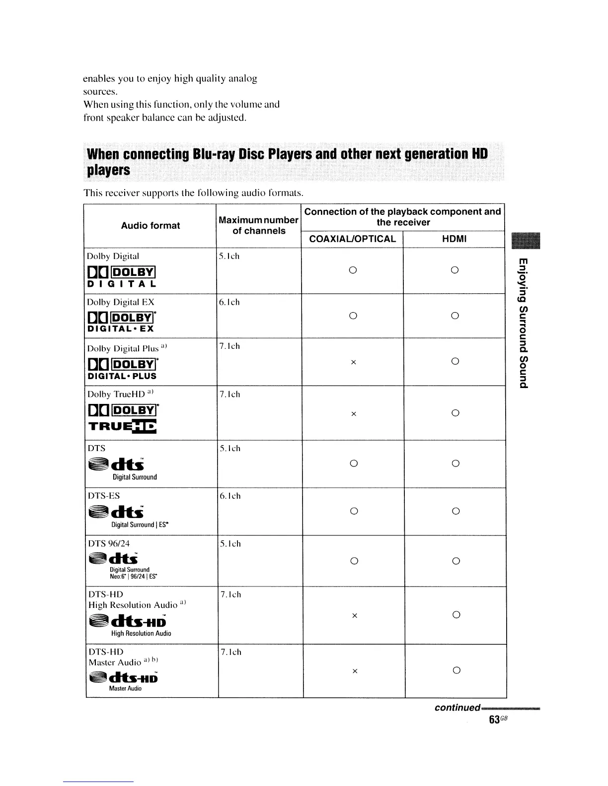 This receiver supports the following audio formats.