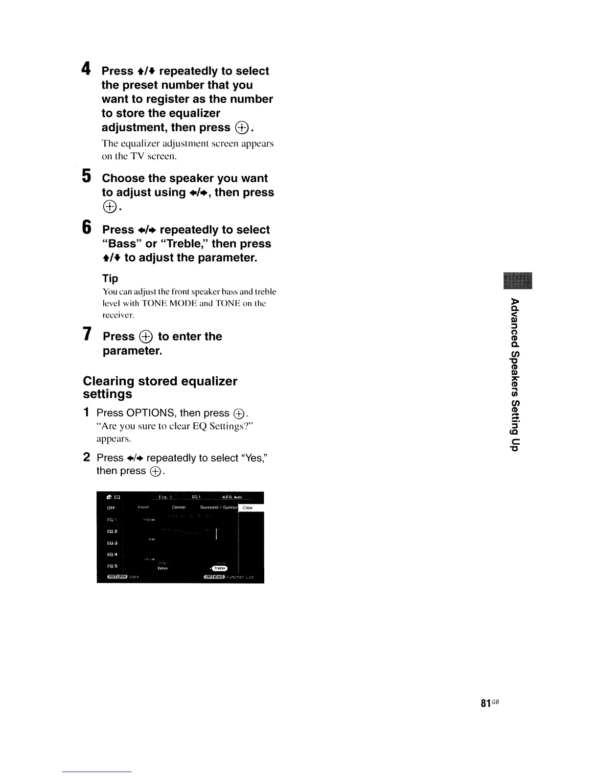 "Bass" or "Treble," then press