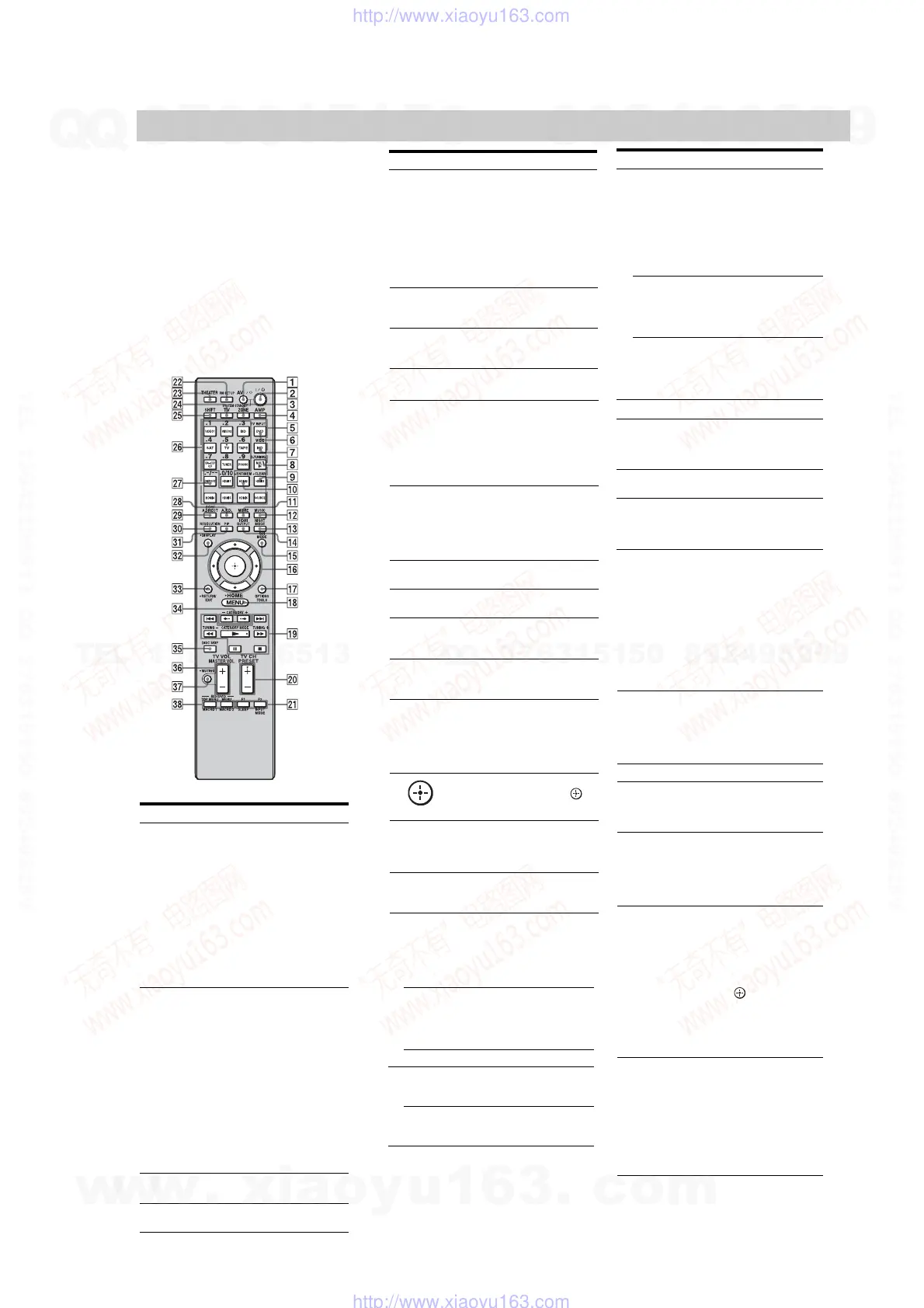 receiver and to control the Sony audio/video