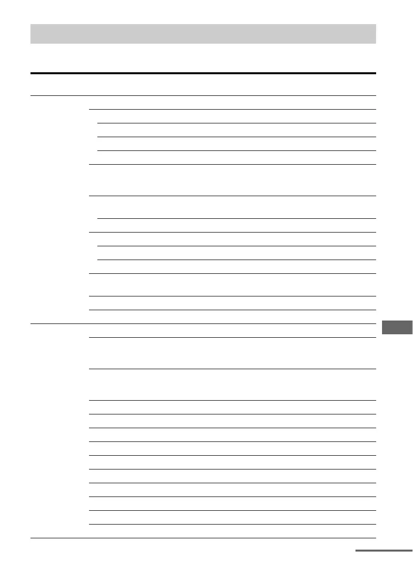 The following options are available in each menu.