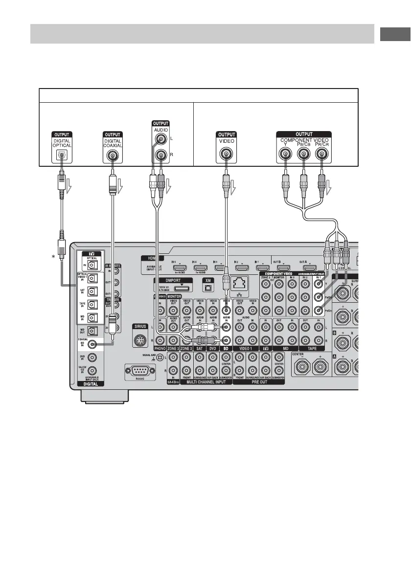 The following illustration shows how to connect a DVD player, Blu-ray Disc Player.