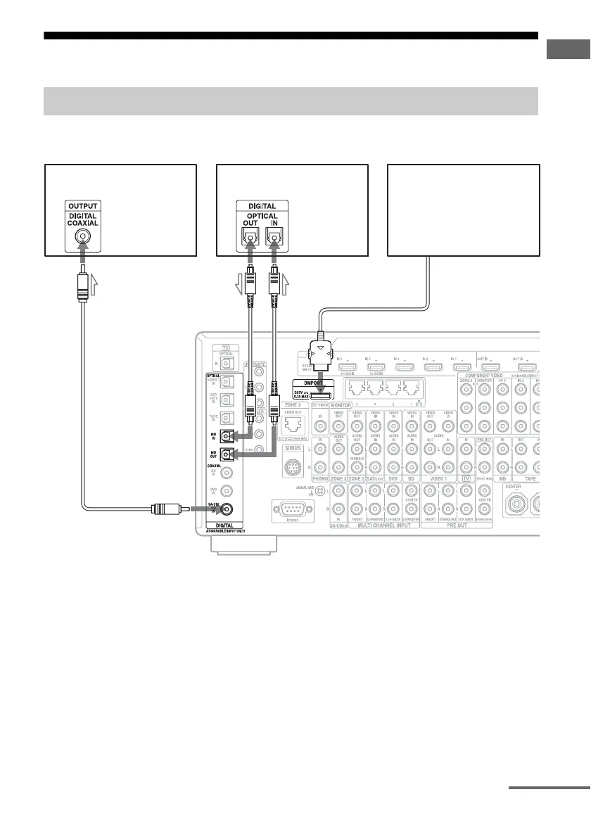 The following illustration shows how to connect a Super Audio CD player, CD player, an MD deck
