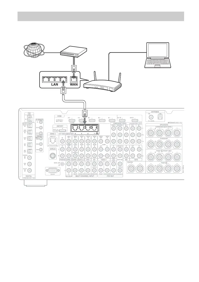 receiver using only one LAN cable. Do not connect