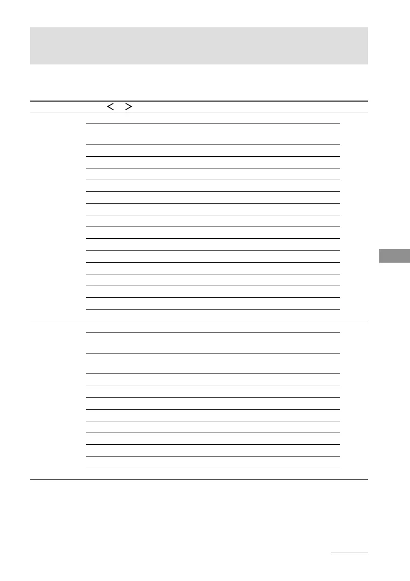 cursor buttons. The tables below show each of the settings that these buttons can make.