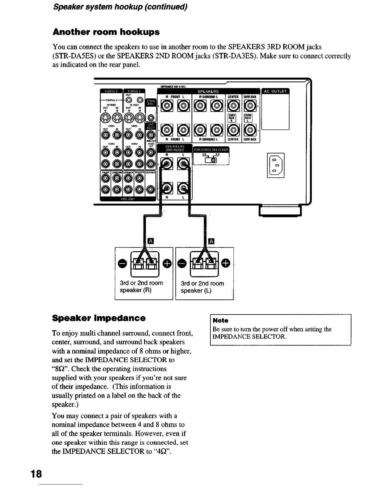 (STR-DASES) or the SPEAKERS 2ND ROOM jacks (STR-DA3ES). Make sure to connect correctly