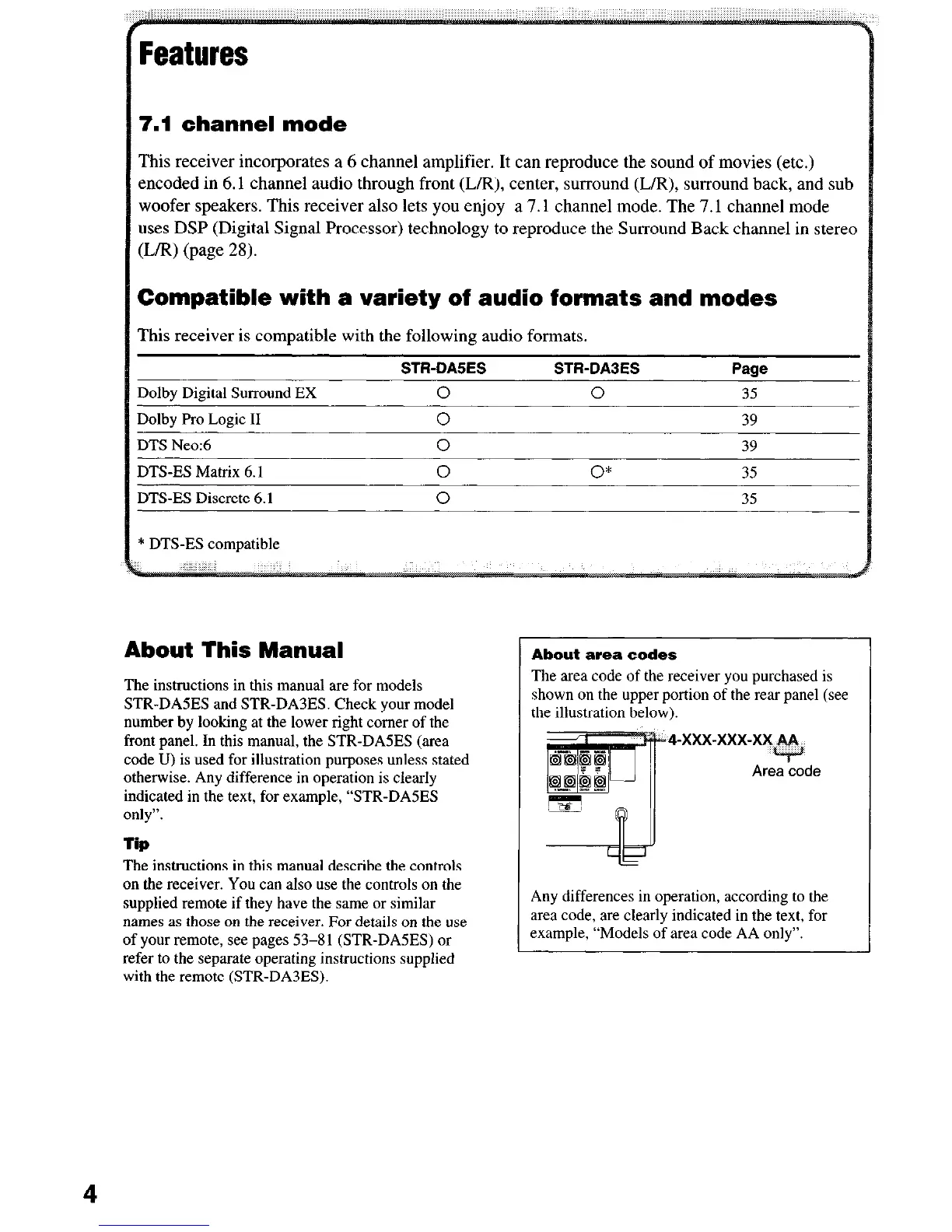 front panel. In this manual, the STR-DASES (area