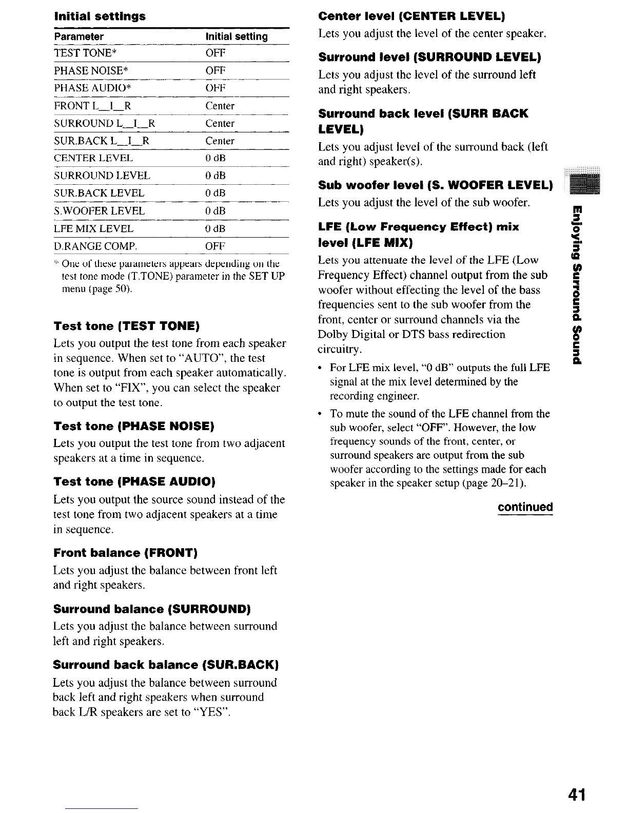 Lets you adjust the balance between surround