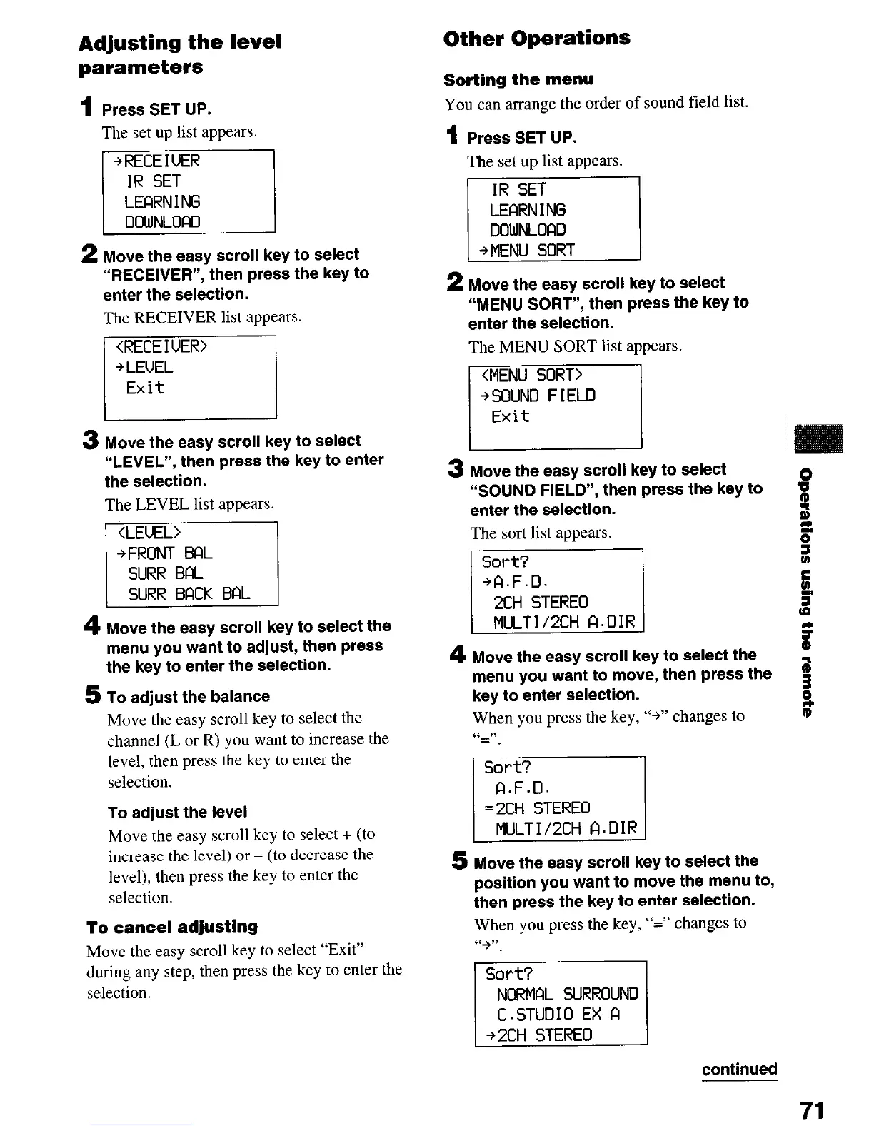 “MENU SORT”, then press the key to