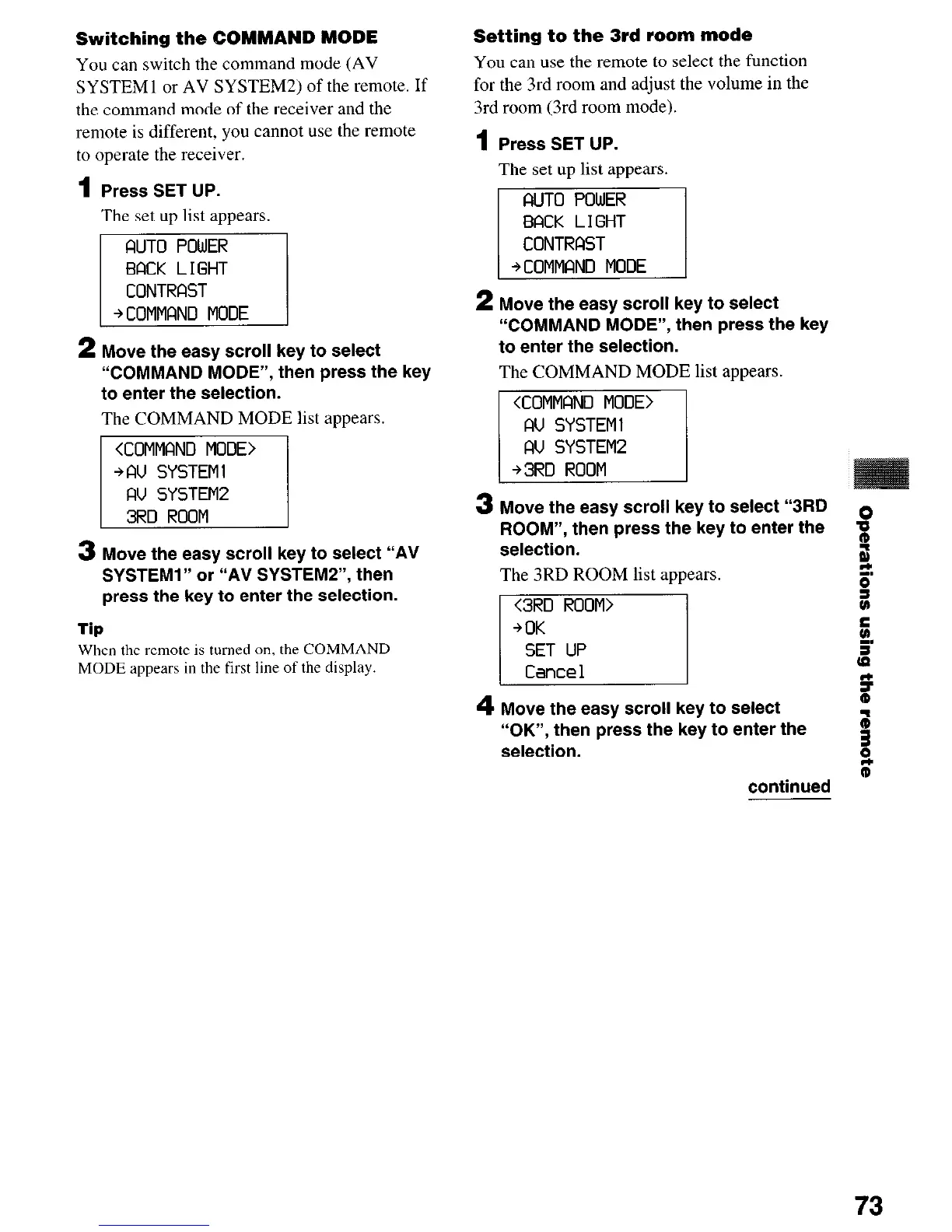 Switching the COMMAND MODE