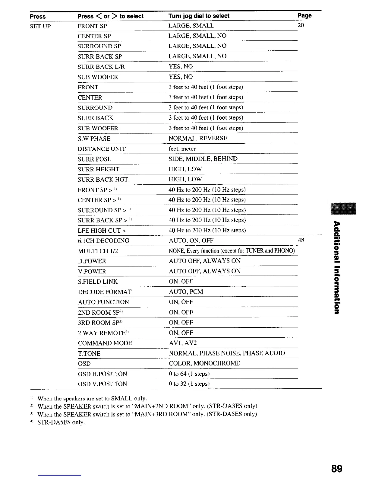 l’ When the SPEAKER switch is set to “MAIN+2ND ROOM” only. (STR-DA3ES only)