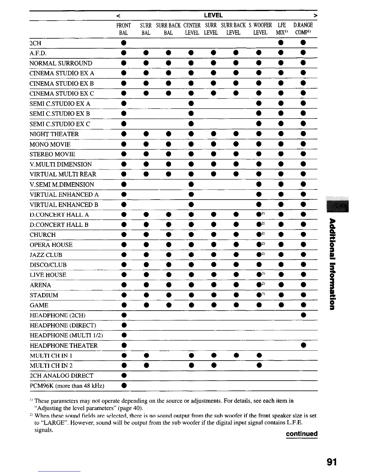 ‘) These parameters may not operate depending on the source or adjustments. For details, see each item in