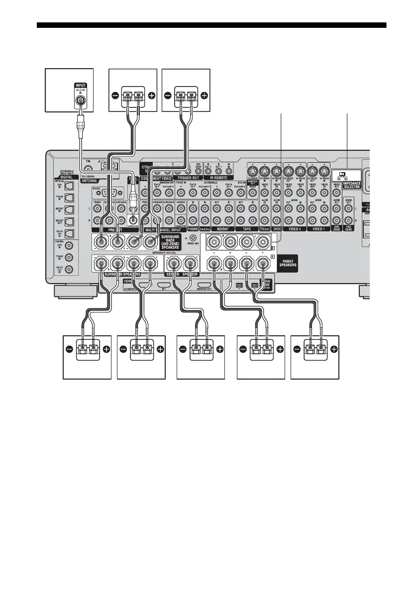 B Speaker cords (not supplied)