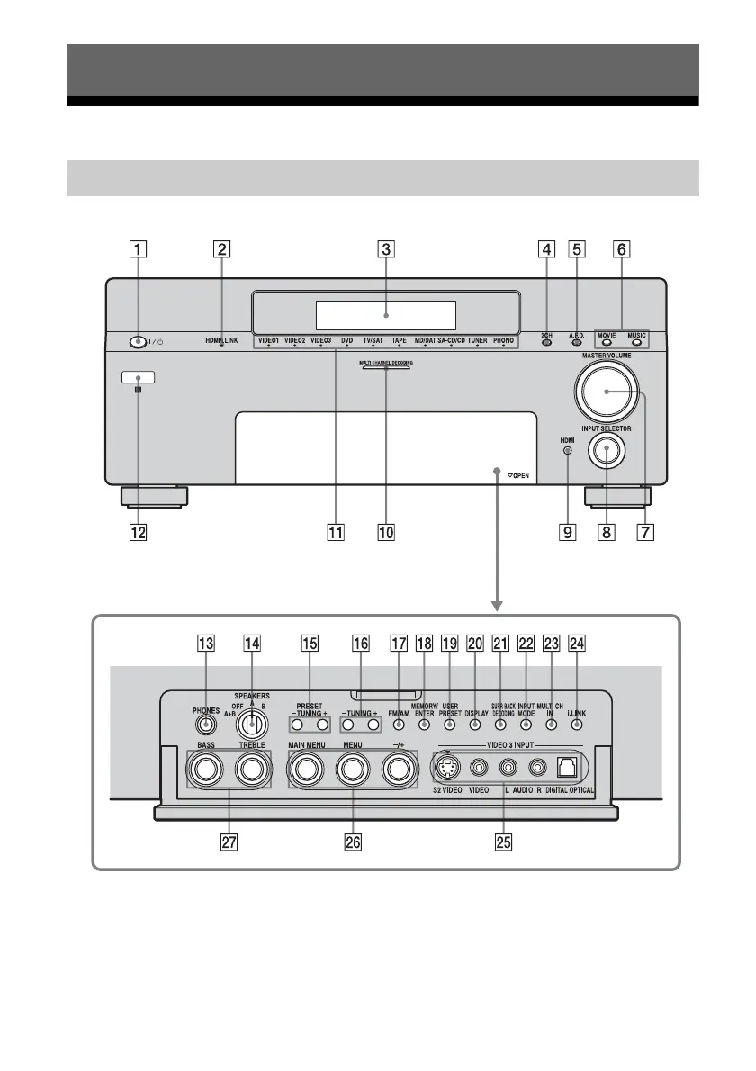Sony STR-DA7100ES - Getting Started; Front Panel Overview