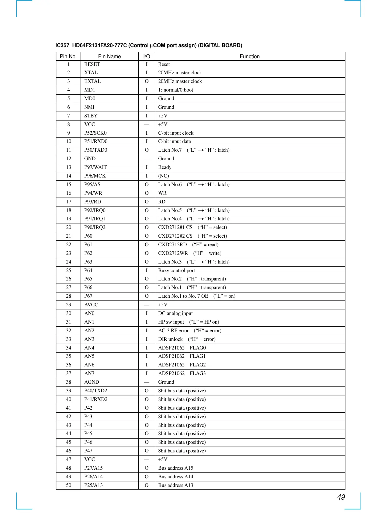 IC357 HD64F2134FA20-777C (Control µCOM port assign) (DIGITAL BOARD)