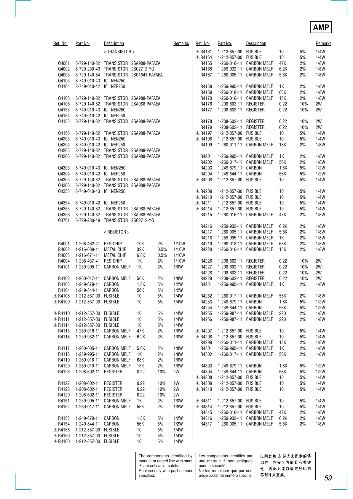 0R4159 1-212-857-00 FUSIBLE 10 5% 1/4W