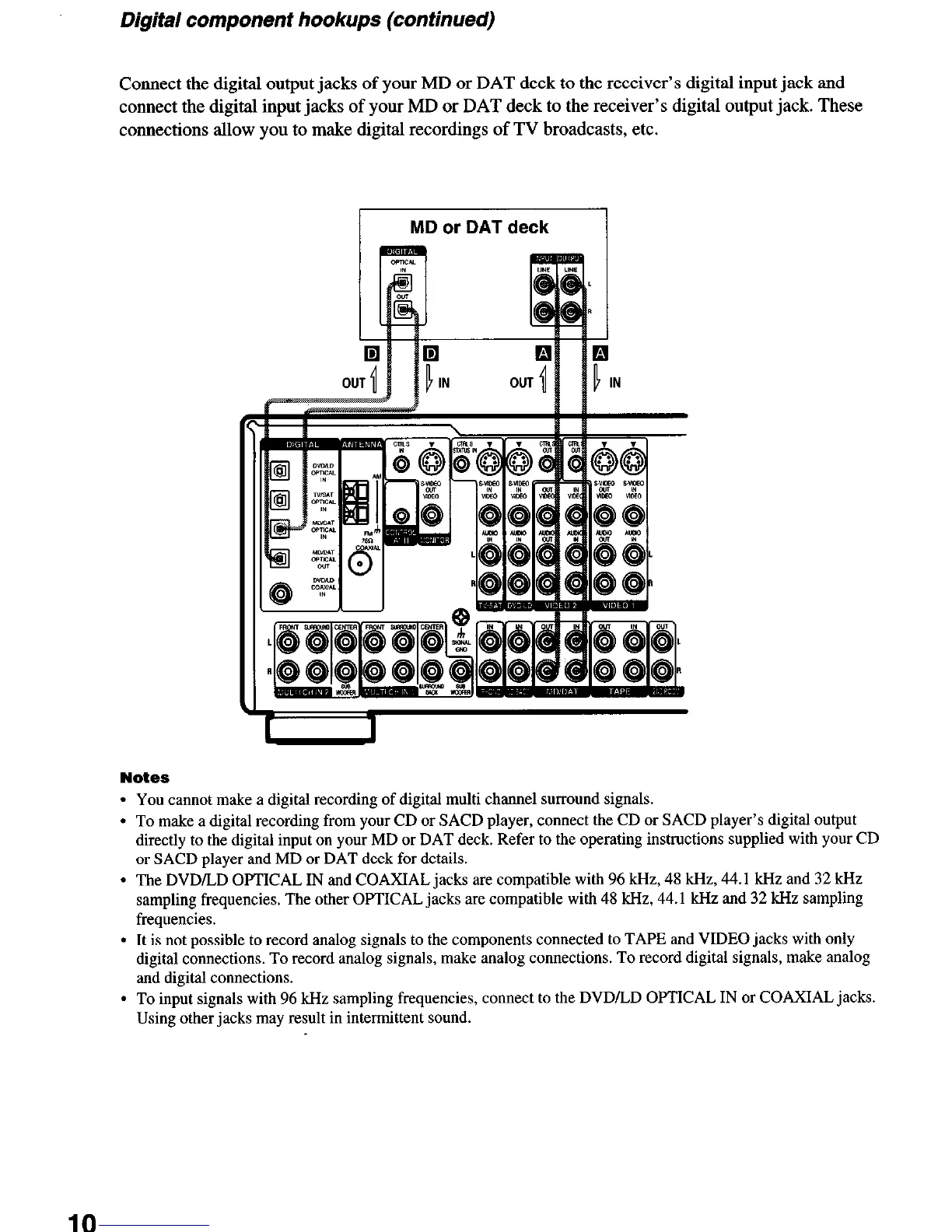 connect the digital input jacks of your MD or DAT deck to the receiver’s digital output jack. These