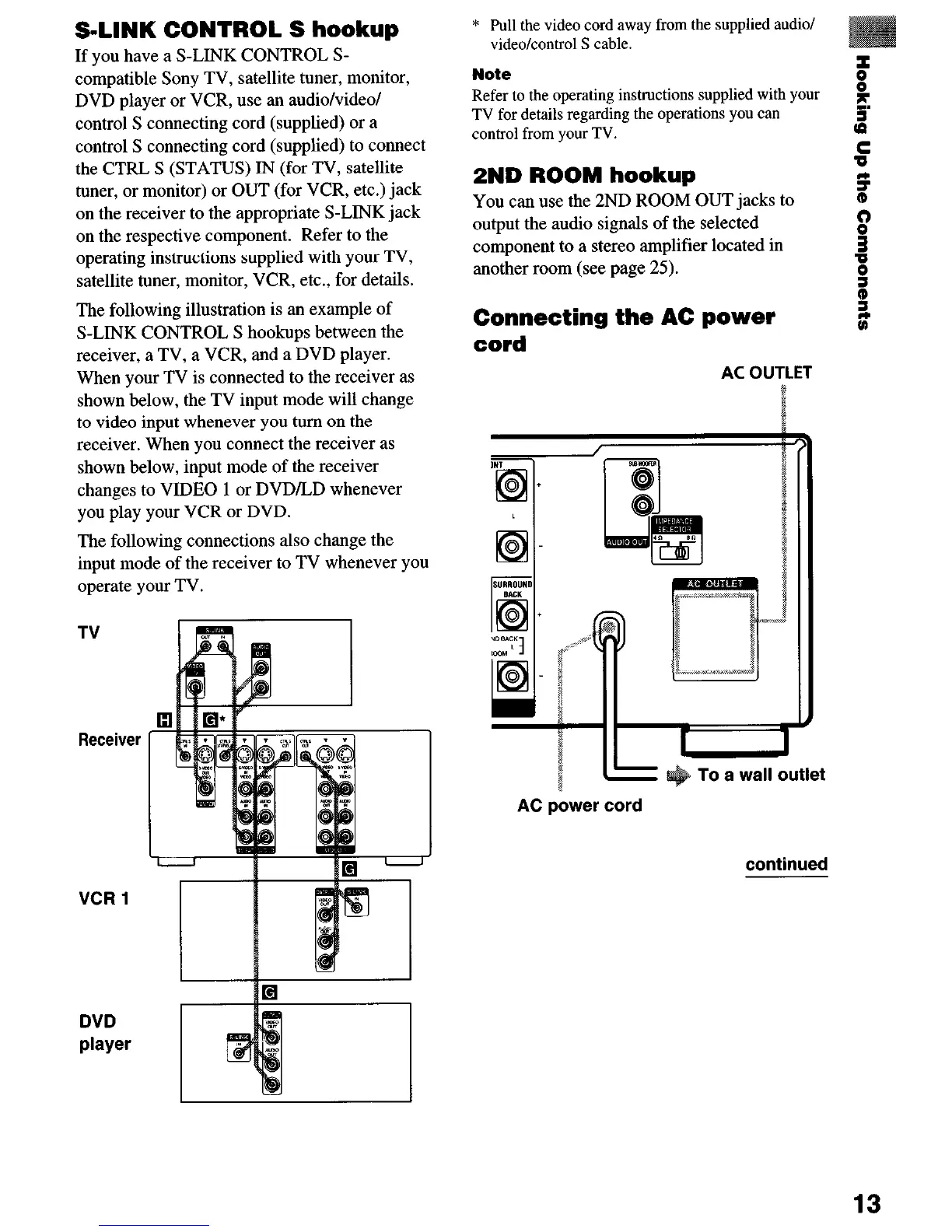 on the receiver to the appropriate S-LINK jack