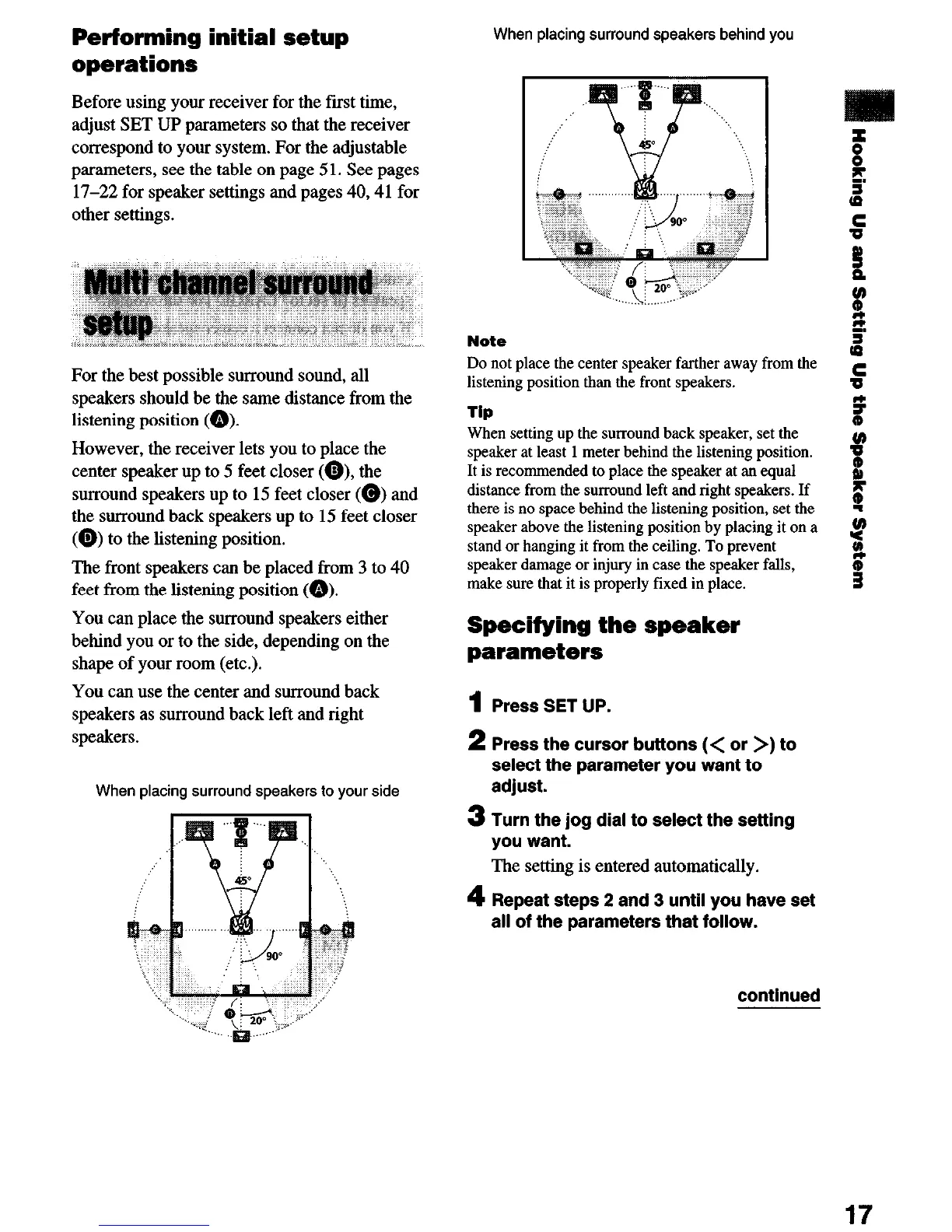 17-22 for speaker settings and pages 40,41 for