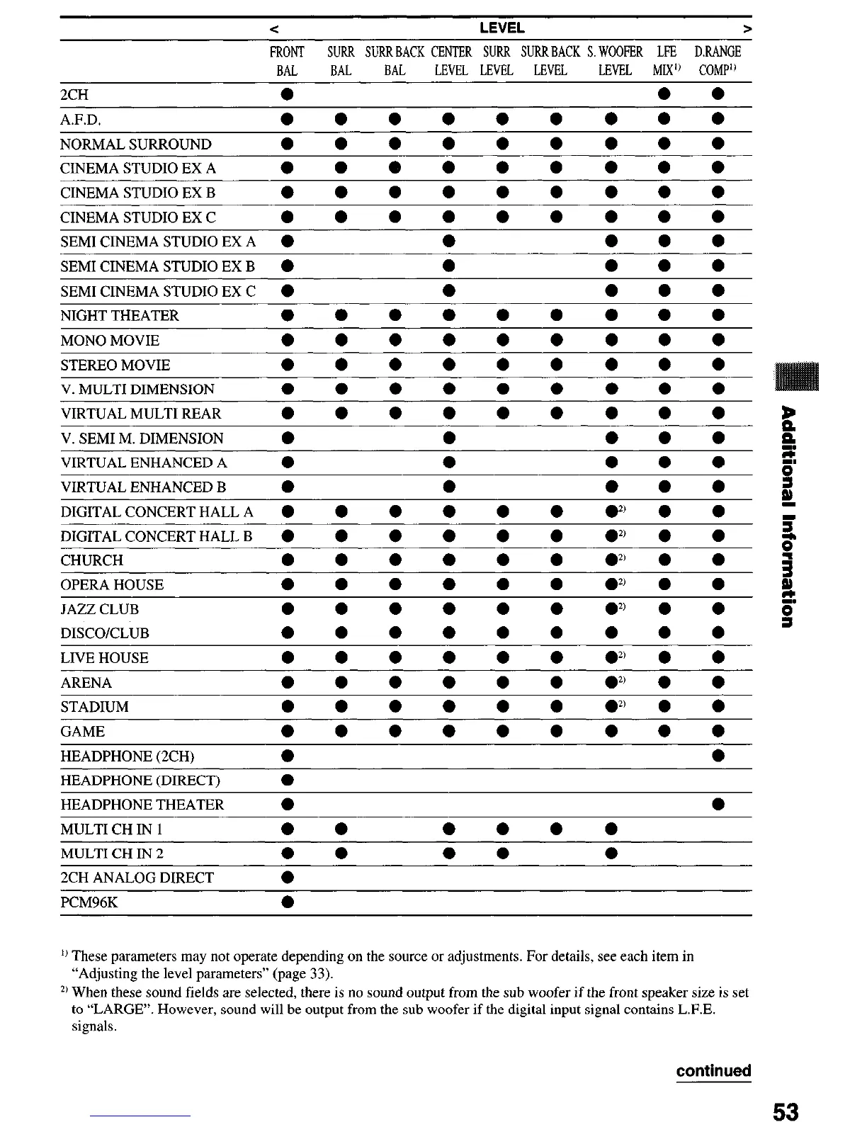 ‘1 These parameters may not operate depending on the source or adjustments. For details, see each item in
