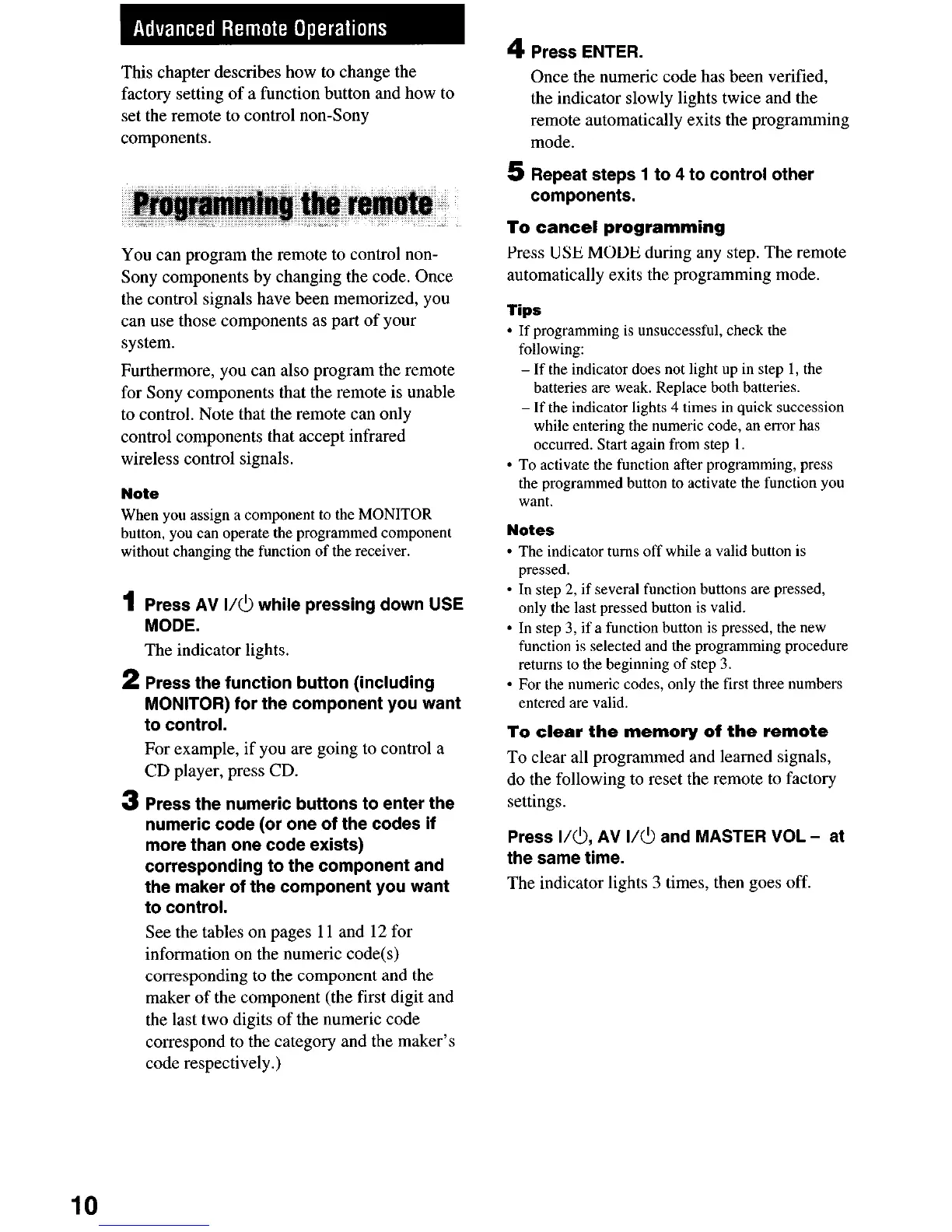 Press I/C.!), AV I/6 and MASTER VOL - at