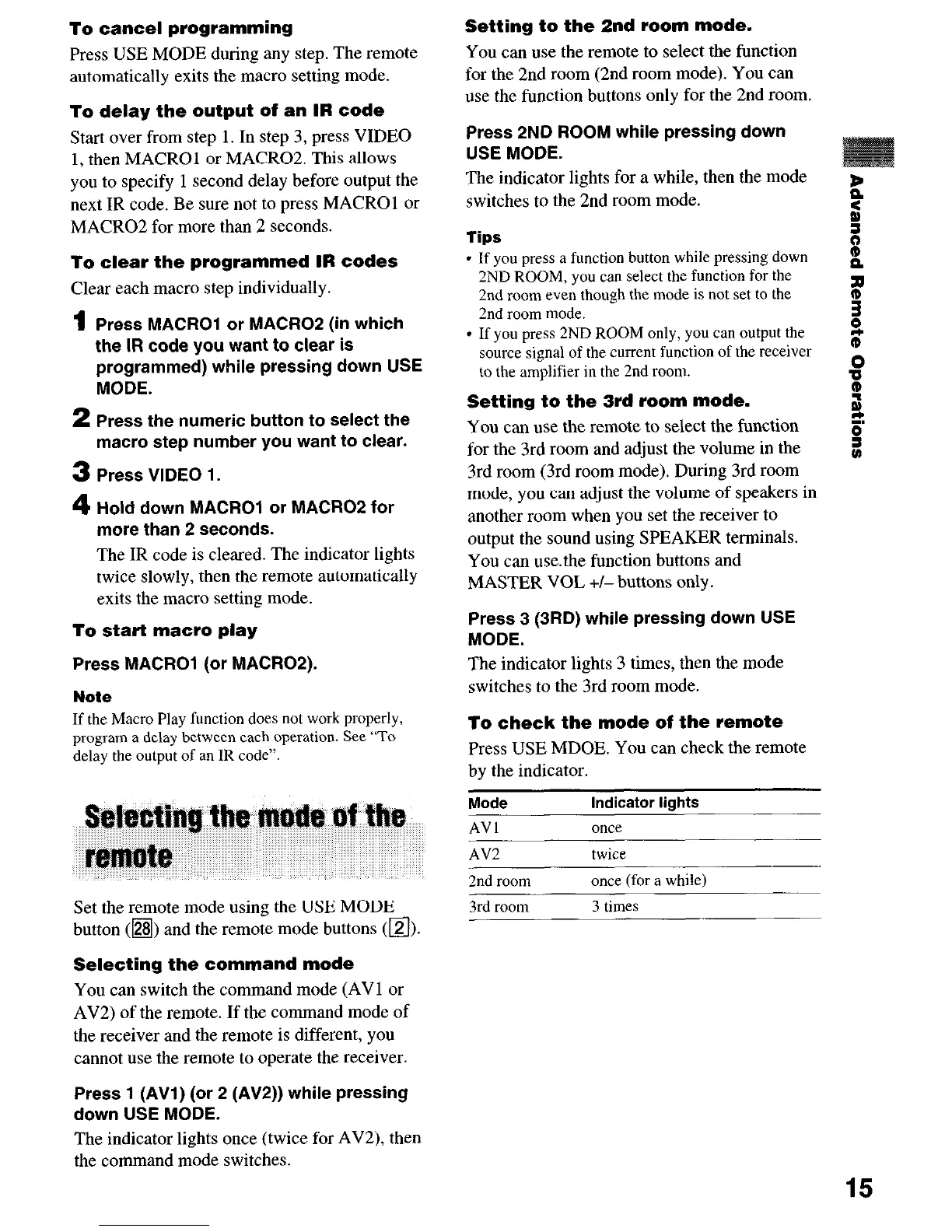 Set the remote mode using the USE MODE