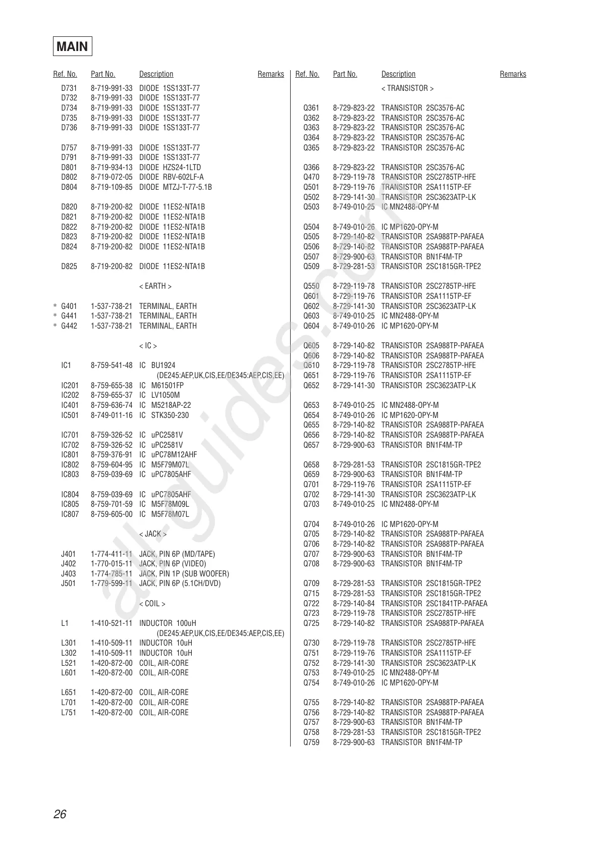 Ref. No. Part No. Description Remarks Ref. No. Part No. Description Remarks