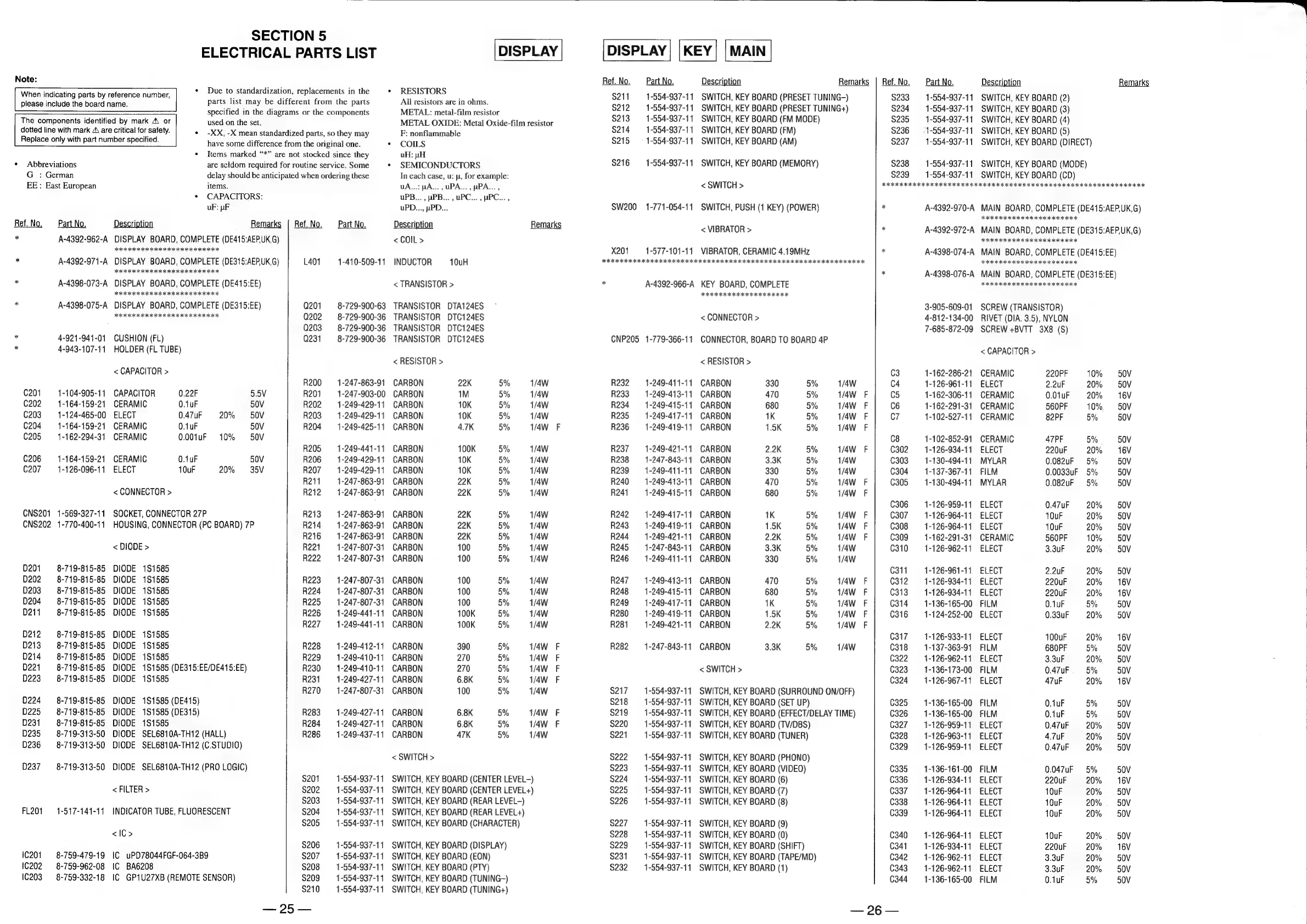 Sony STR-DE315 - Electrical Parts List; Component Listings by Category
