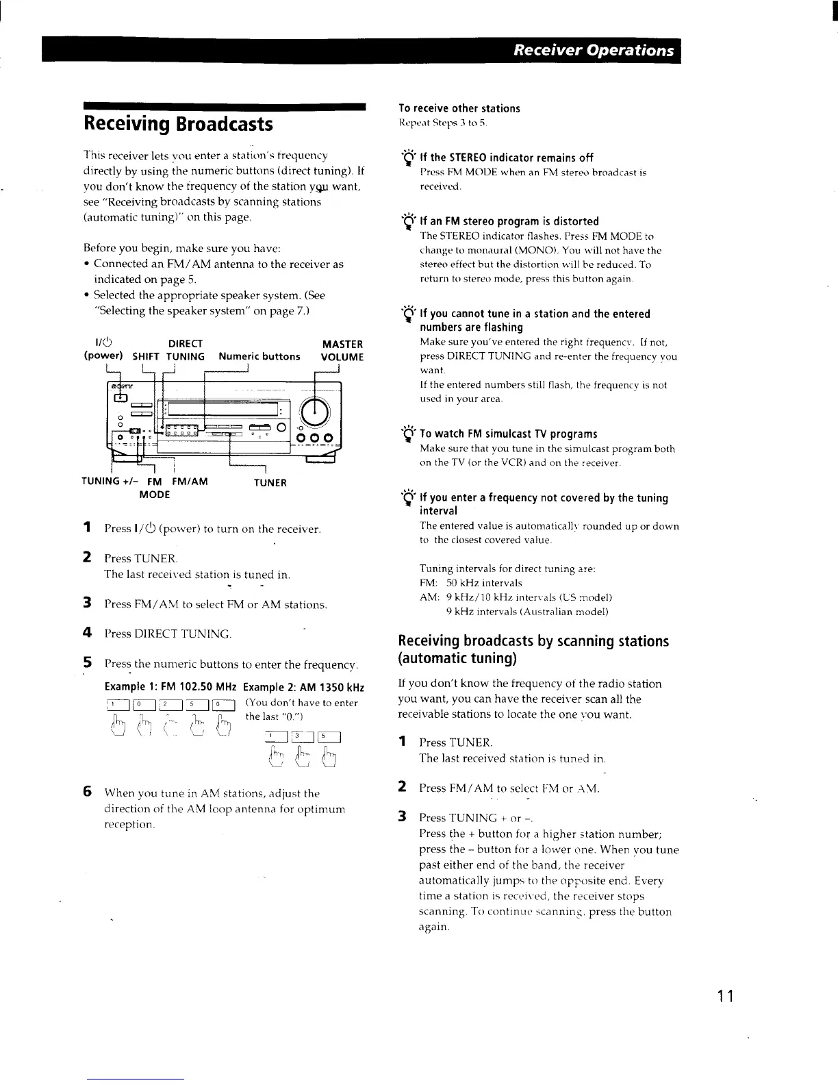 Sony STR-DE325 - Receiving Radio Broadcasts; Direct Tuning Methods