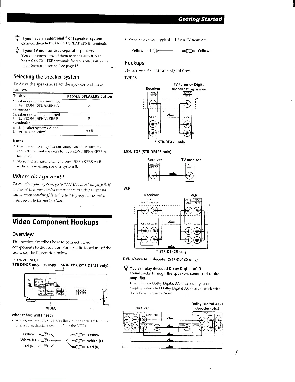 Sony STR-DE325 - Video Component Connectivity; Connecting Video Components