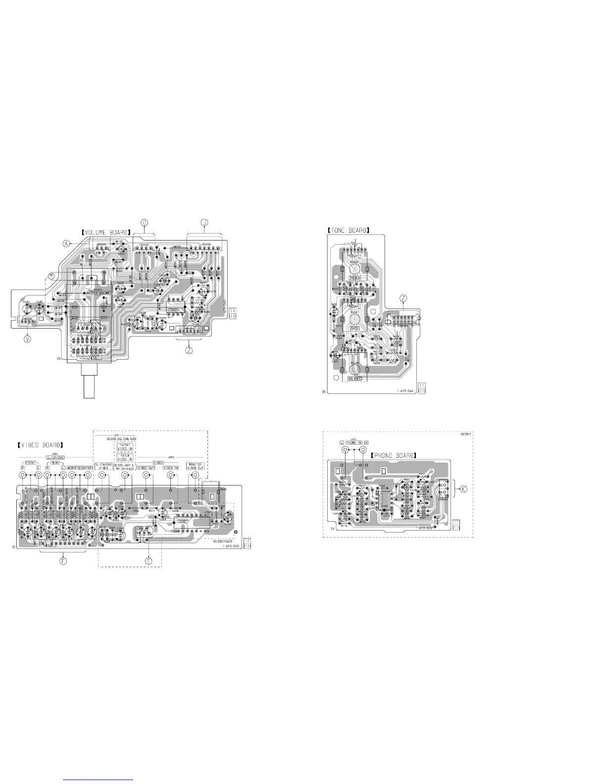 5-13. PRINTED WIRING BOARDS – VOLUME Board/TONE Board/VIDEO Board/PHONO Board – See page 19 for Circuit Boards Location.